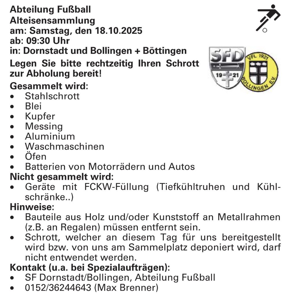 Herzlich Willkommen bei den Aktiven Fußballern des VfL 1921 Bollingen e. V. und des SF Dornstadt 1921 e. V.